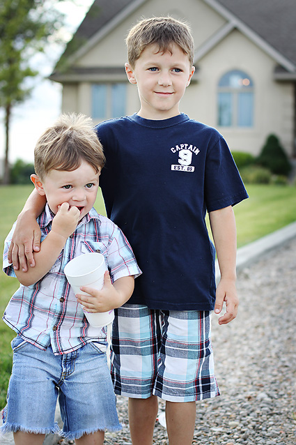 On the 4th we loaded up and headed to Kelly's hometown. Again, the boys had fun with the poppers and playing with family. They barely held still long enough for me to get their pictures.